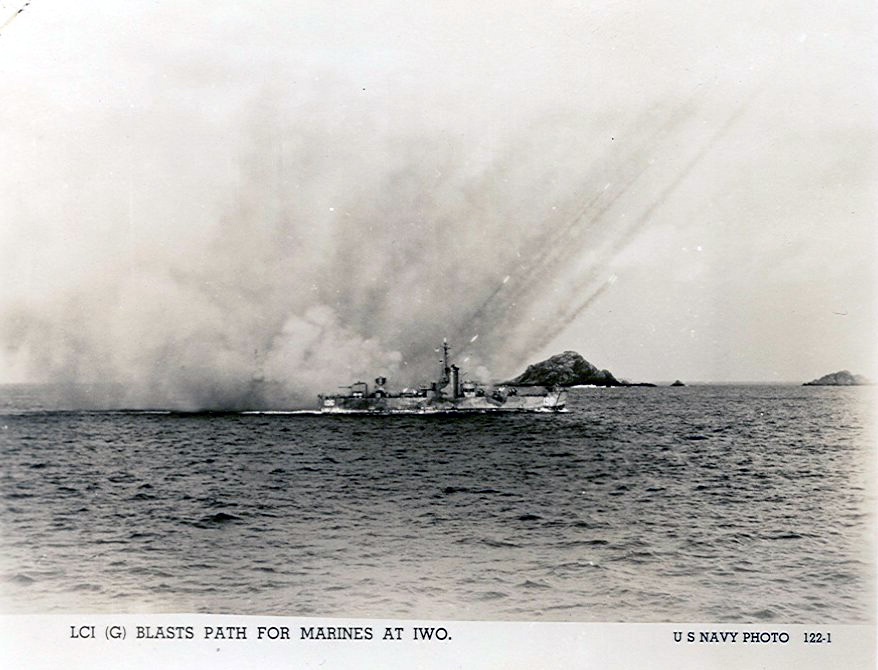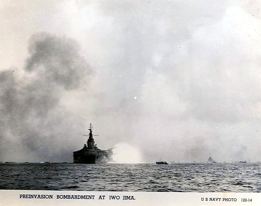 Monday, Feb. 19 (D Day) Arrived off Iwo Jima around 0615. The battleships and cruisers were throwing shells into the island, up within a mile of it. The island has a very large volcano at the southern end, the rest of it is low, with a plateau in the center. We put off our troops and they went ashore, we moved into within about a mile of the beach. No enemy planes over, but lots of gun fire on the beach. The first waves got on the beach, but with heavy casualties. The beach is very soft and practically next to impossible to land tanks and gear. Something they didn't plan on. Weather is fine, sunny and the water calm. Around 2:00 P.M. they started to bring back casualties. They were shot up pretty bad. One fellow died after getting back on the ship and was buried at sea. The troops ashore are moving very slowly, the Japs seem to be able to put their motor fire very accurately. They can't seem to get near the volcano, too many up in the rocks. We cruised at sea all night returning in the morning. Had a flash red, but no planes.